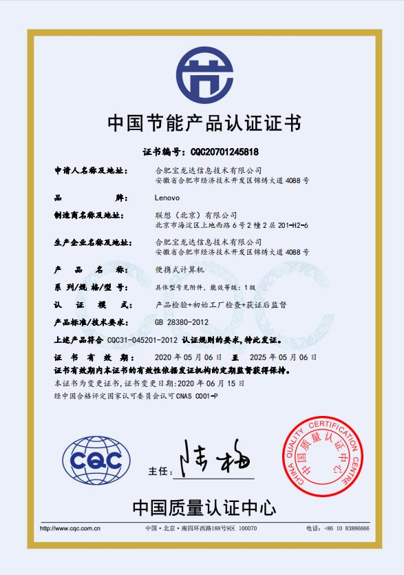 中國節(jié)能產(chǎn)品認證證書掃描件  :